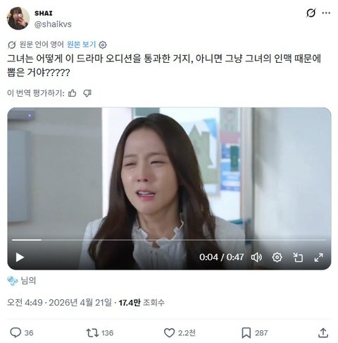 how did she even pass the audition for this drama or they just chose her because of her connections????? pic.twitter.com/SmmpzAbPVQ — sʜᴀɪ (@thvkolawyerr) April 20, 2026 phản hồi bài viết:[+74][-9] bài đăng gốc: here 1. [+31, 0]Nói thật thì, nếu có mắt… 2. [+21, -2]Khi tôi thấy mấy đứa nói rằng diễn xuất của Jisoo ổn hoặc là đã tiến bộ, tôi thật sự tự hỏi đầu óc chúng có bị tai nạn gì không 3. [+16, -1]Có những người nước ngoài không nhận ra rằng diễn xuất của cô ấy tệ vì họ không biết tiếng Hàn, nhưng ngay cả chúng ta, khi nhìn những diễn viên nước ngoài…